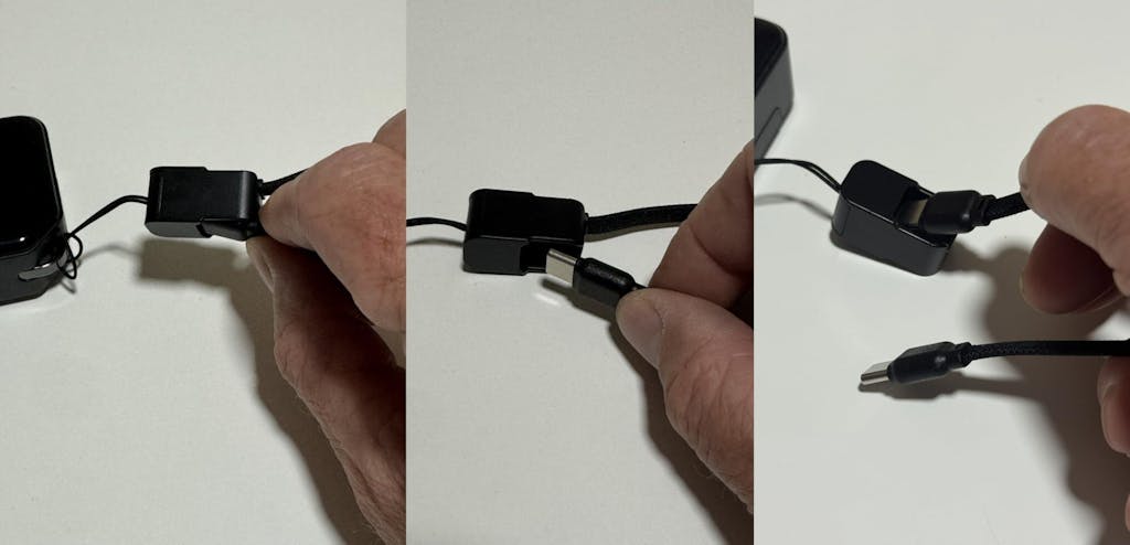 What I like:• Seek and compact design• Built-in retractable stand works great with my phones• The portable battery itself feels well made• The glossy front looks really nice but will probably will get scratched over time.• The included cable can be used as a hand strap• The locking mechanism on the lanyard feels durable• I get about 22W when charging my Galaxy Fold 6 and Galaxy S22 Ultra, which I'm okay with. Note Fold 6 supports up to 25W and the S22 Ultra supports up to 45W.• 45% juice remaining when I charged my S22 Ultra, which has a 5000mAh battery, from 0-100%What I don't like:• USB-C cable feels cheap• USB-C cable can be a challenge to unplug due to the lack of ridges or textures on the ends of the cable• Due to the USB-C cable's flat design, I find myself having to twist and untwist the cable when trying to charge my phone• False advertisement. The charging cable isn't built-in